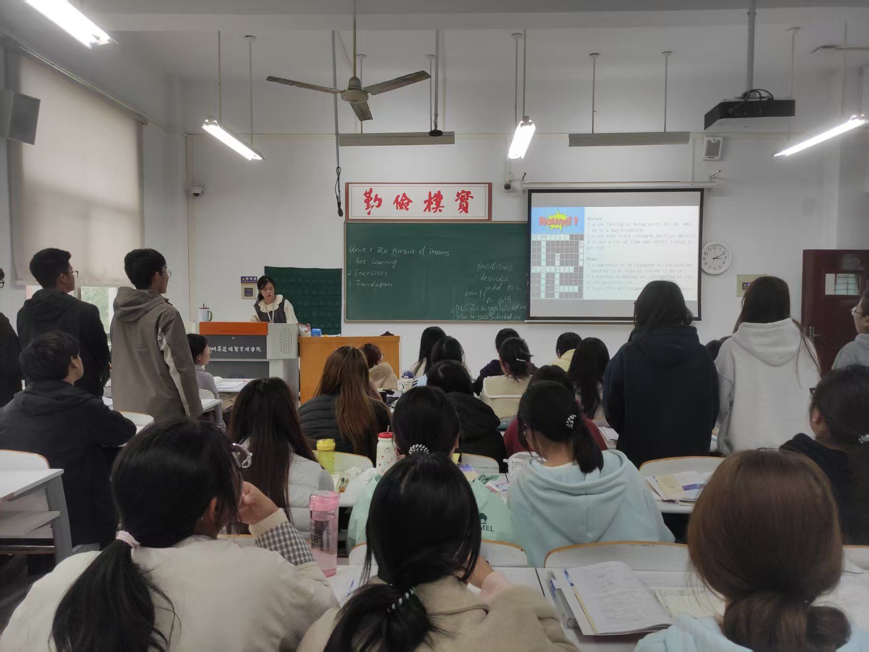 陈延楠老师则聚焦大学英语四级翻译题型,为老师们呈现了一堂针对性极强的技巧指导课。课堂上,陈老师结合四级翻译真题特点,从词汇积累、句式优化、文化背景解读三个维度展开讲解。针对翻译中常见的词汇搭配错误、句式结构单一等问题,陈老师通过对比分析、例句示范等方式,引导员工掌握“同义替换”“句式转换”等实用技巧;同时,结合中国传统文化、社会发展等常考主题,补充相关背景知识与高频表达,帮助员工拓宽知识面,提升翻译的流畅度与专业性。陈老师的课堂逻辑清晰、重点突出,注重理论与实践相结合,让员工在真题演练中快速掌握四级翻译的得分要点。