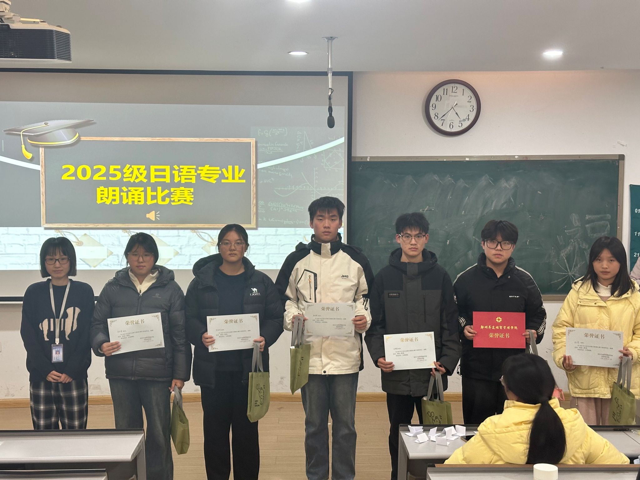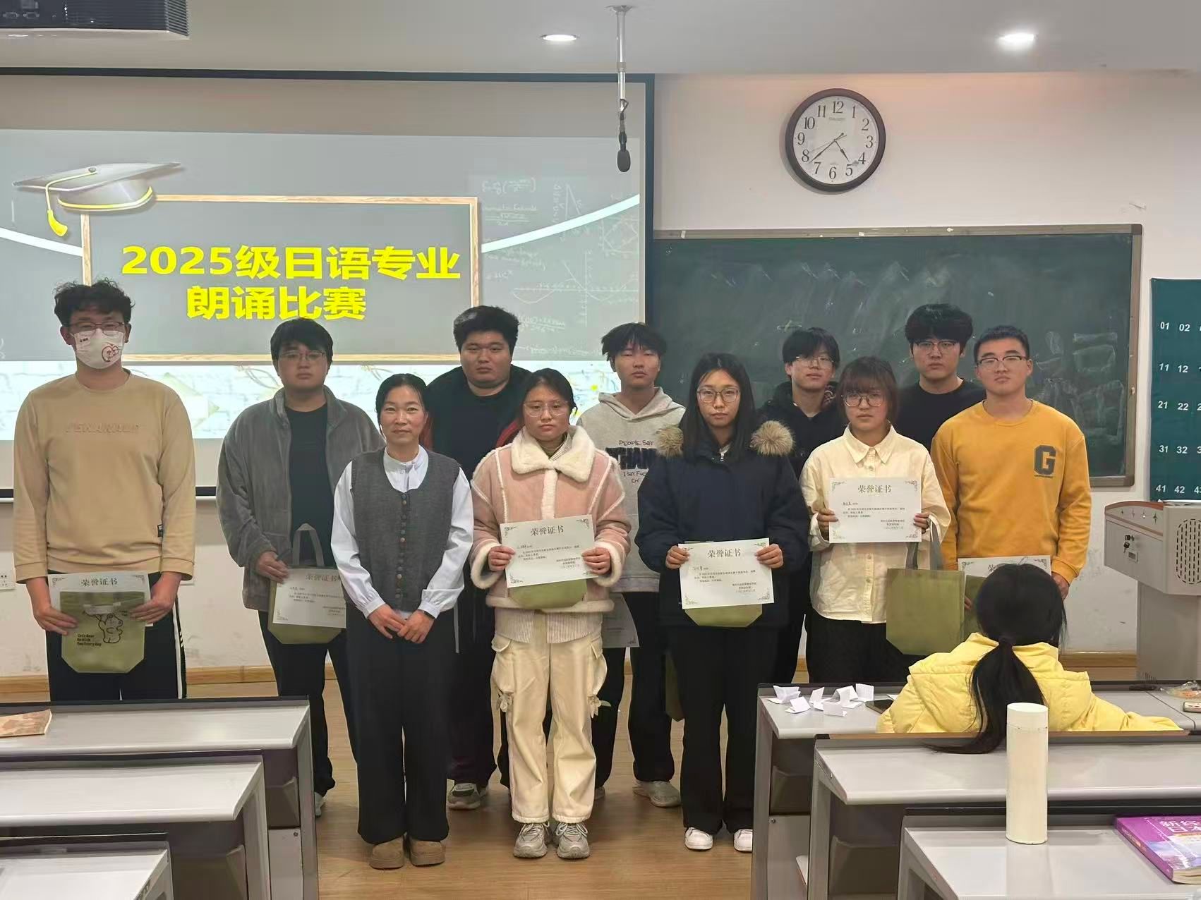 此次新生朗诵比赛的成功举办,不仅为2025级日语专业新生提供了展示自我、交流学习的平台,有效提升了员工的日语口语表达能力,更营造了勤学善练、乐于实践的专业学习氛围,为日语专业人才培养与教学实践的深化奠定了良好基础。