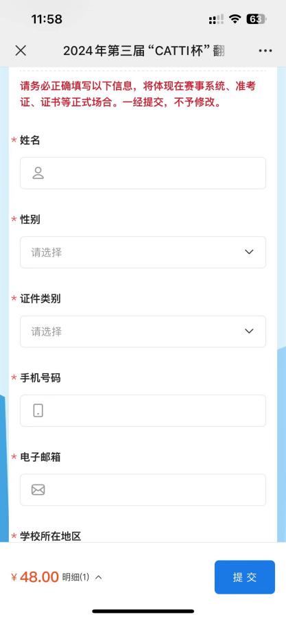 信息如实填写完毕后,可点击页面下方“提交”并缴费(可根据个人经济情况选择是否获取备赛资料,翻译教研室亦会免费提供电子版备赛资料哦)。