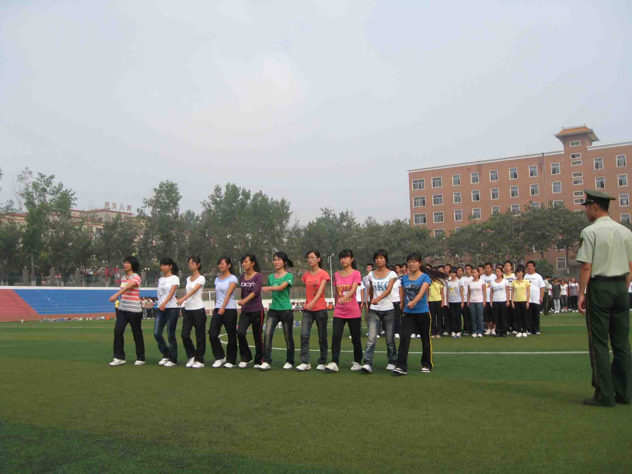 2010年9月13日,外语系2010级新生在教官带领下迎来了他们入校的第一课:军训。 坚定的步伐,嘹亮的口号饱含着他们对老员工活的向往。