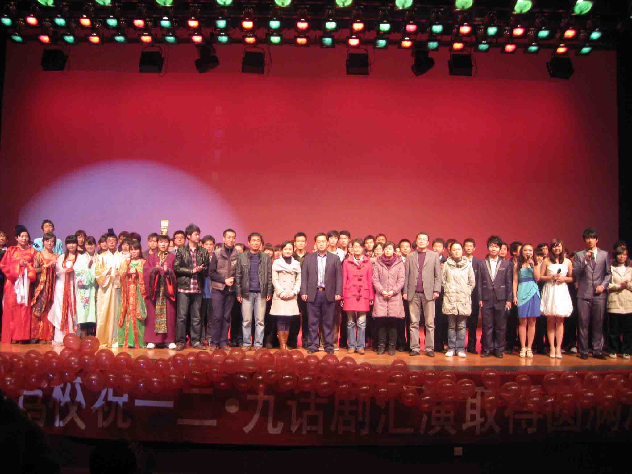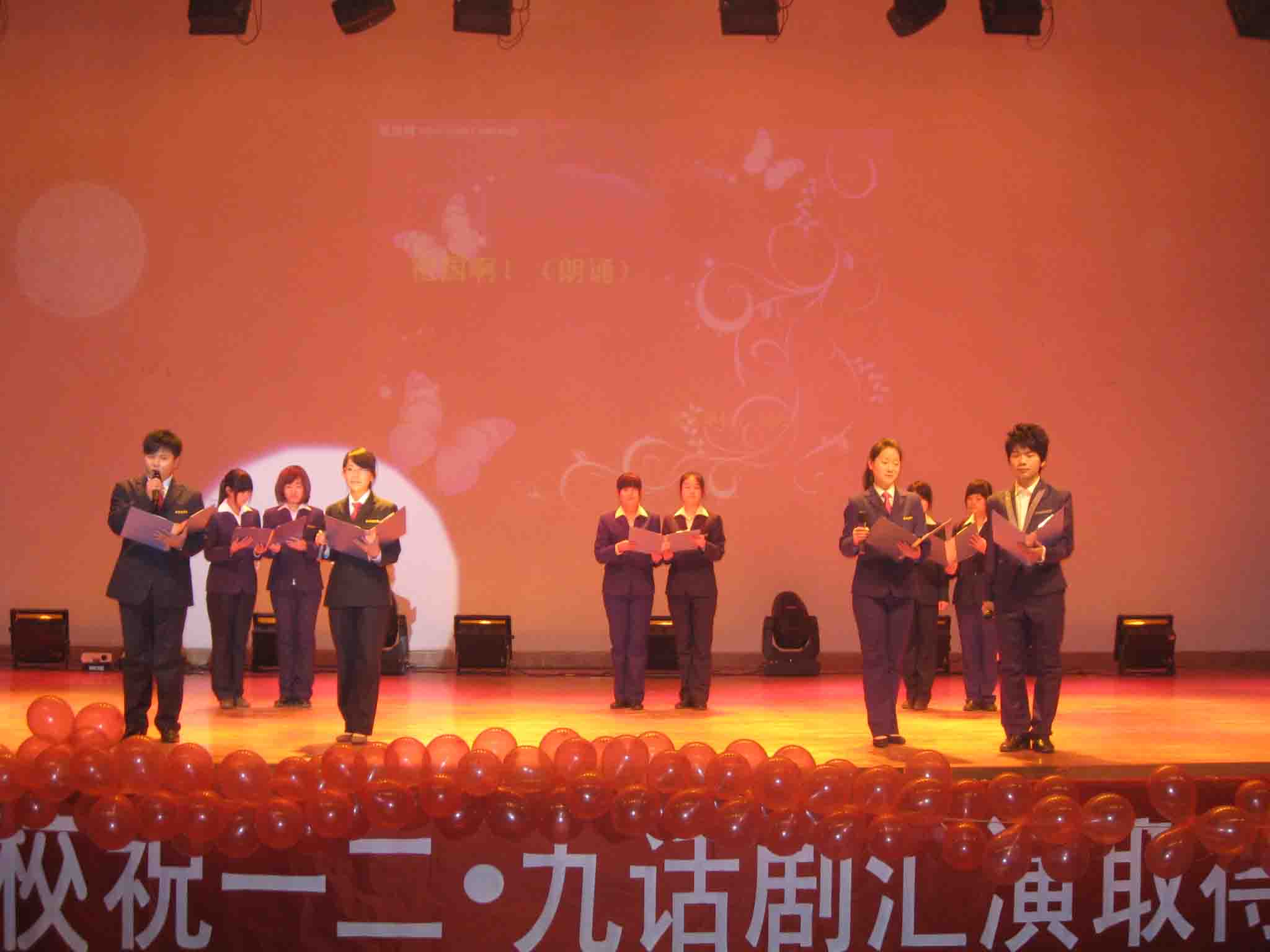 战火纷飞,书写血色浪漫;硝烟弥漫,演绎无悔铿锵。接着,国贸系学子带来话剧《血色铿锵》,把我们带回了那个战火纷飞的年代,而他们展示的却是誓死保卫祖国的感人画面。企管系的相声《新桃花源记》则为我们描绘了一个现代的桃花源,一幅欣欣向荣,科技发达,生活美满富足的新桃花源气象。由八系联合演出的话剧《钗头凤》,让我们读懂了那个对爱情坚贞,为报效国家而义愤填膺的陆游。学子们的精湛表演更是把全场的气氛推向另一个高潮,观众们随着他们时喜时悲,而那经久不息的掌声则是对他们精彩演出的最大支持。