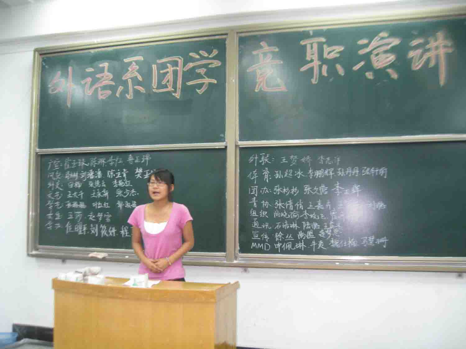 为更好的推动外语系团学各项工作的开展,为我系团委员工会增添新的活力,2011年6月13日晚和6月17日中午在外语楼101教室和102教室分别进行了外语系团学各部部长竞选和团委副书记、员工会主席团的竞职演讲。第十五届团学各部门部长、干事以及外语系09、10级各班班长、团支书参加了大会。