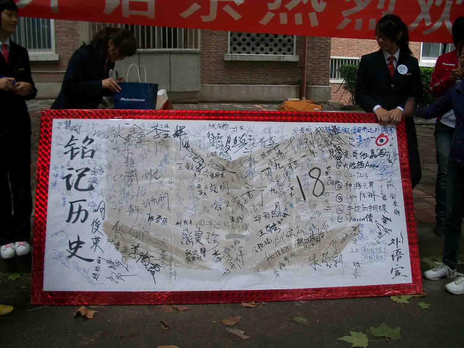 铭记民族耻辱,肩扛时代旗帜。在“九一八”事变爆发80周年之际,由外语系团学主办,外语系青协、外联部、宣传部和广宣部承办的纪念“九一八”八十周年签名活动在南食堂门前举行。意在号召广大青年员工牢记国耻,振兴中华。