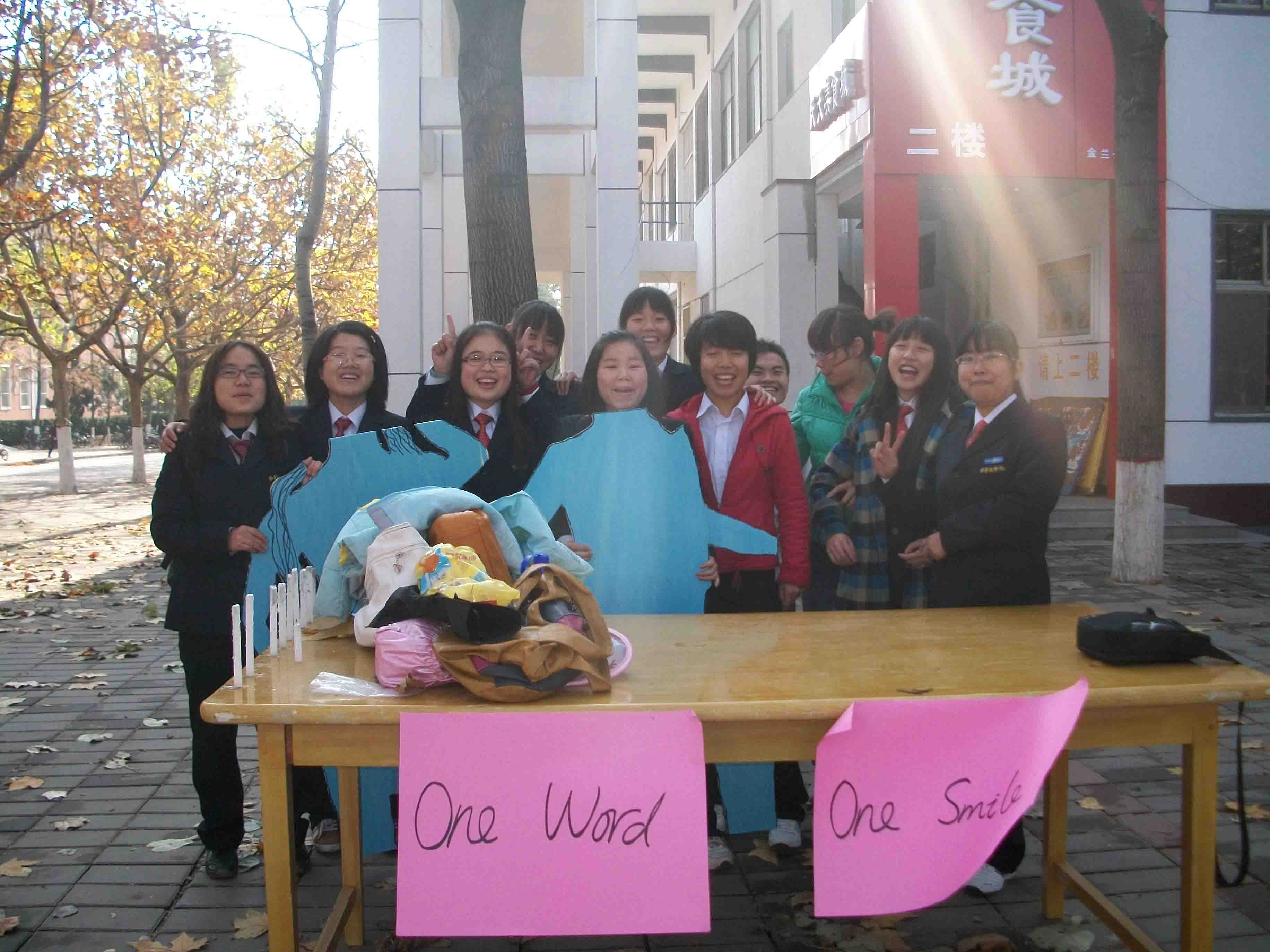 为浓郁外语文化氛围,11月22日中午,由外语系员工会办公室主办的“一个单词,一张笑脸”活动在龙湖食府前举行。