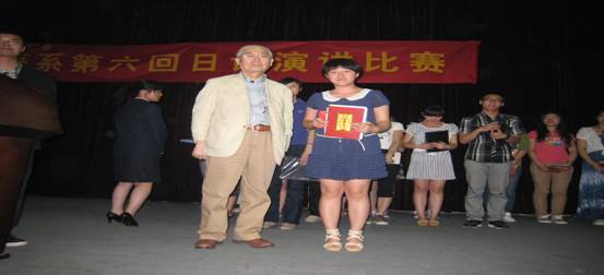 比赛由09日语1班张彬彬同学和肖璐娜同学主持。共有十八位参赛选手,其中三年级15名、二年级3名。比赛分为两个部分,第一个部分采取三分钟自由演讲的形式,主要从发音、声调、文章内容、独创性以及表演能力等几个方面评审。第二个部分是即兴提问部分,要求选手流畅敏捷正确地回答评委的问题,每个选手两个问题。18名参赛选手以他们生动的演讲,精彩的内容,吸引了在场的老师和同学,博得在场师生的一次又一次雷鸣般的掌声。最后经过激烈的角逐,其中09日1的赵雨薇同学取得了第一名,第二名是09日1王赟,第三名是09日2徐凤。