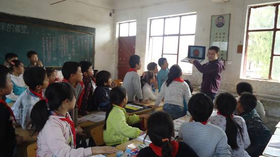 在支教老师为孩子们进行了半小时的作业辅导,而后送上了精心准备的课程,课程涵盖了对国旗的认识、成语故事的讲解、简单的英语单词等。为了能使课堂内容更丰富,每位志愿者充分发挥创意,准备了游戏、音乐、视频等,让孩子们更多接触多样的内容,尽可能多地了解大千世界。课堂上孩子们认真听课,积极配合老师。那一张张可爱的笑脸,一双双渴望知识的眼睛让每位老师感动,欣慰。课间休息时,老师们主动和孩子们交流,了解他们的生活和学习,让孩子们充分感受来自志愿者的一片爱心。本次支教活动到下午四点半结束,可孩子们,老师们都不愿离开公司,不愿让这温馨,快乐的时光流走。整个校园充满着不舍与感动。