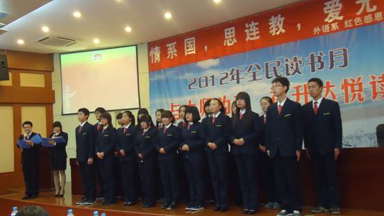 外语系员工还表演了精彩的节目,情景剧《穿越风雪的音乐盒》、《假如我还爱我》引发了观众们对青春和梦想深深的思考,西泰山村小学孩子们朗诵的《三字经》更是温暖了全场,最后晚会在激情高昂的诗朗诵《青春中国》中落下帷幕。