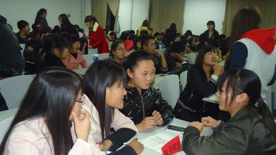 11级口译班班长赵婵博及11级英本一班团支书侯志娟发言,与大一新生分享自己的班委经验,精彩的发言赢得现场阵阵掌声。随后大会进入交流环节,11级班委与新生们相互交流工作、学习,现场气氛温馨、积极。
