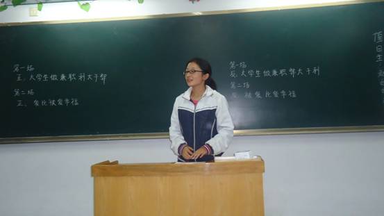 为让老员工对做兼职有更深的认识,从而合理规划自己的老员工活,2012年10月29日晚7:00,外语系员工会文艺部在外语楼A楼105教室组织了一场以“老员工做兼职利大于弊还是弊大于利”为辩题的辩论赛。正方持“利大于弊”的观点,反方反之。由上届辩论队成员贺雪倩、刘恰等担任本次辩论赛评委。