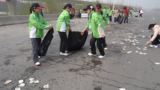 比赛前志愿者们及各路口的保安人员清理道路,阻止一切交通工具通行。各志愿者就位站岗。比赛于8:30正式开始。当运动员们跑到公司的服务站点时早已疲惫不堪,但他们的眼神中却没有丝毫的放弃。虽然气喘吁吁,头发紧紧地粘到脸上,速度也放慢了许多,但他们仍坚持尽力挥动臂膀,努力奔跑。大家相互鼓励,互相加油,有的以小队形式进行,有的是单独跑。大家的激情震撼了在场的所有人。比赛一直持续到上午11:00结束。志愿者们将道路清理干净。大家虽然很累但每个人脸上都挂着微笑。于12:30公司全体志愿者按原路返回公司。