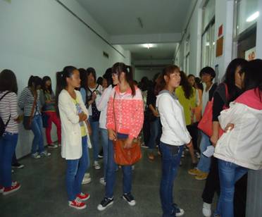 2013年9月23日、24日晚六点半在外语楼A楼101、109等九个教室分别进行“初试”和“复试”,各位员工干部佩戴工作证,着统一服装整个招新过程顺利圆满。