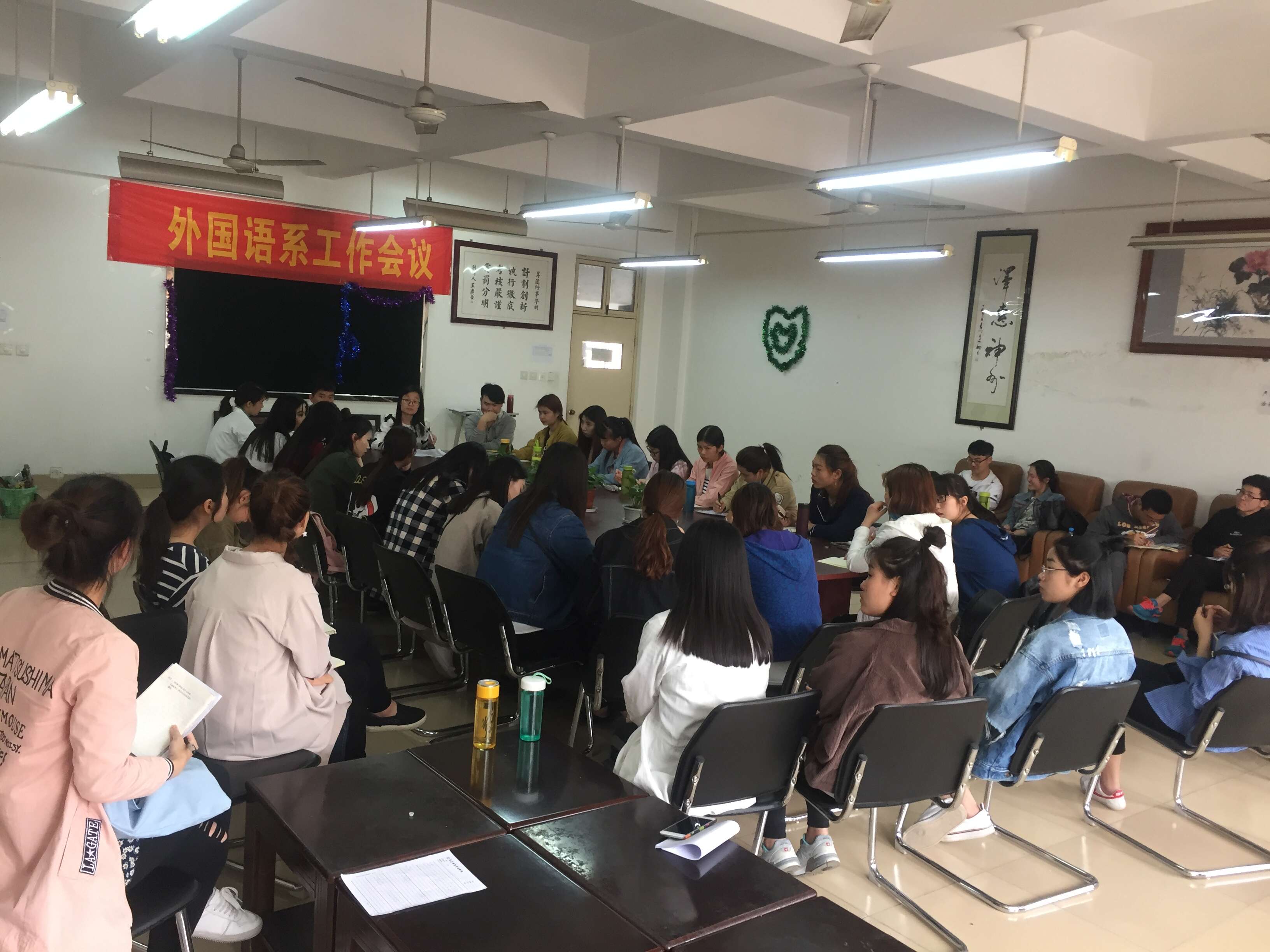运动会前夕,团委员工会召开全体部长会议,由行政秘书惠凯赟老师部署各部门运动会期间的具体工作,她还询问各部门工作进度,确保所有环节万无一失。会议结束,各部长都明确了任务,保证有序开展。