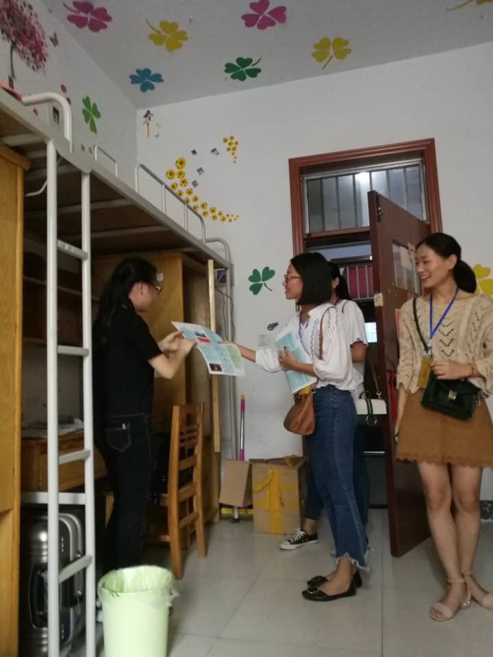 与此同时,党员服务队按照课程情况不同,组成了若干小组,在上午、下午和晚上的时段深入到“小石器”们的宿舍楼。给他(她)们提供贴心的指导和服务。党员服务队的同学拿着公司和beats365唯一官方网站分别制作的宣传手册在新生宿舍里向大家宣传防盗防骗、反邪教的知识,同他(她)们交流大学的生活学习心得,告诉他(她)们如何规划好自己的学习和生活。这些关心和照顾,让新生同学们从心底里产生了对这些党员学长的信任,他们把宣传页贴在门上和墙上,时刻提醒自己保持警惕,牢固树立安全防范意识。