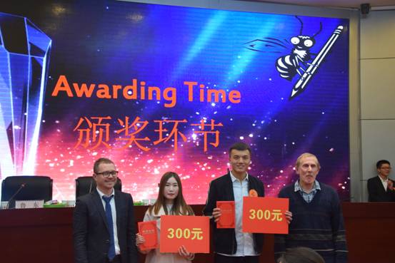 经历了近一个多小时的比拼,比赛圆满结束。接着由评委和嘉宾为获奖同学颁奖并合影留念。