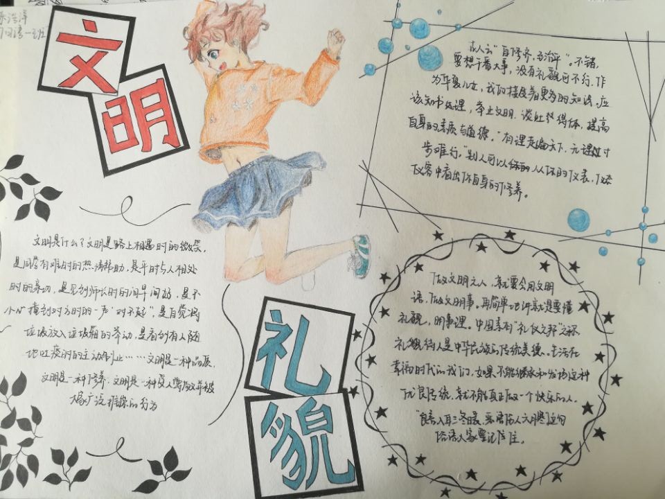 外语公司根据实际情况,策划举办了文明礼貌月一系列活动,包括手抄报展、21天习惯养成文明行为随手拍活动等收到广大同学的欢迎和好评。