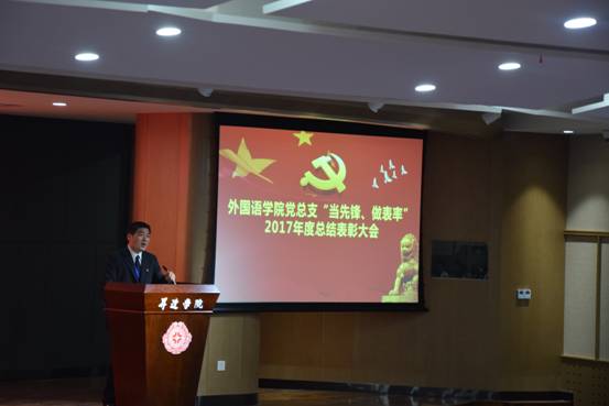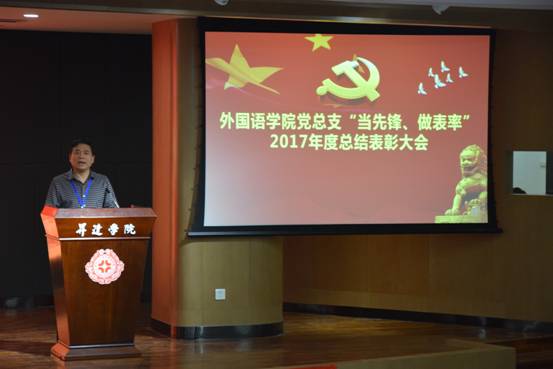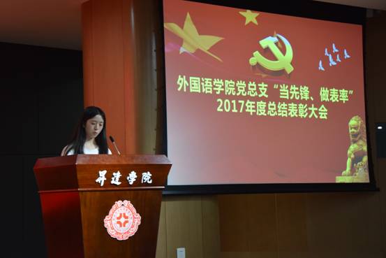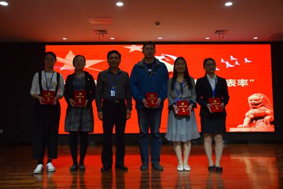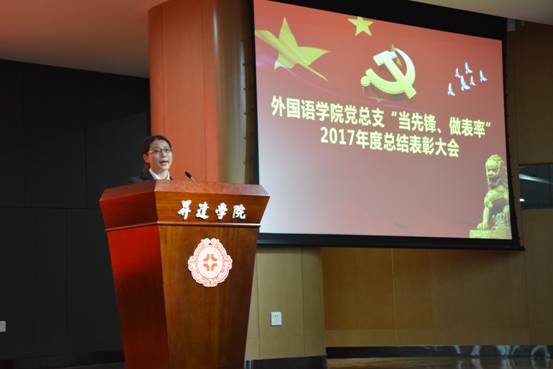 熊华霞老师代表受表彰的教工党员上台发言,她向与会人员汇报了自己在2017年度“当先锋、做表率”活动中所取的成绩,并表示,在未来的工作中,一定会再接再励,把此次表彰作为自己今后更加努力的动力。同时,她也向全体党员发出倡议,在即将到来的本科教学工作合格评估中,发挥每一名的党员的先锋模范作用,为评建增光、为公司添彩。