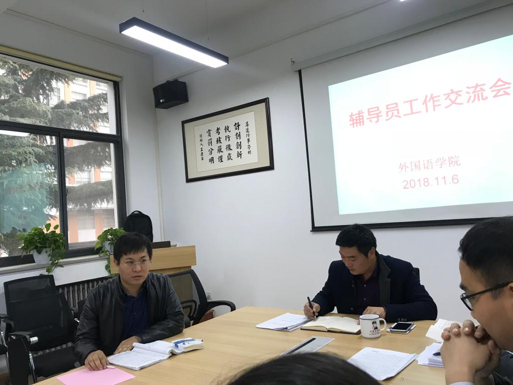 为进一步提升辅导员工作水平和能力,外语公司选派辅导员王鑫老师、王彬老师参加了在郑州举办的2018年秋季“高校辅导员素质能力提升专题研修班”,为更好的扩大学习效果,达到共同提高的目的,11月6日下午,beats365唯一官方网站组织召开辅导员培训交流会,两位老师就培训内容和心得体会与大家进行了交流。会议由党总支书记石皓召同志主持,行政秘书惠凯赟老师及全体辅导员参加了会议。
