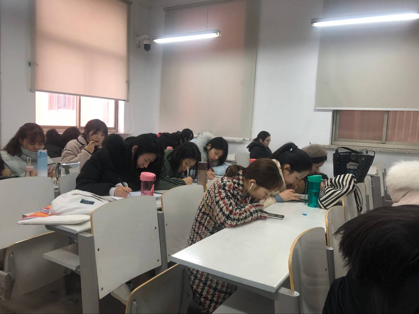第四,针对上课出勤情况,手机入袋情况,课堂听课情况做出要求。另外马上期末考试,要求大家认真复习,并注意诚信考试,拒绝舞弊现象。