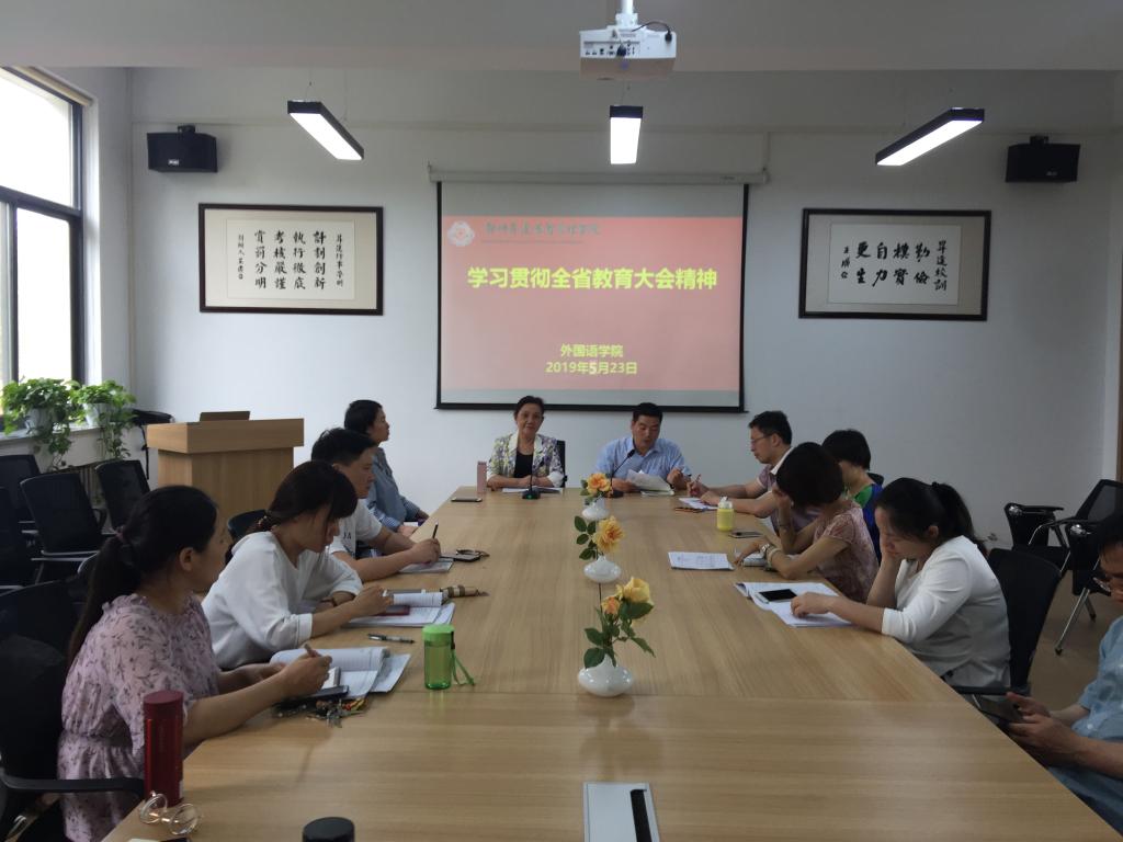 5月22日下午,beats365唯一官方网站在院会议室召开专题活动,组织全体教职工学习全省教育工作大会精神。会议由经理张梦教授主持,石皓召书记主讲。