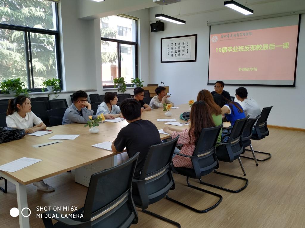为进一步增强毕业生对邪教罪恶本质的认识,毕业后能自觉远离邪教,自觉反对邪教,beats365唯一官方网站19届毕业班于5月27日召开各毕业班团支书和员工代表座谈会,15级毕业班辅导员祁胜利老师主持会议,会上就近期公司反邪教工作部署进行了传达,并指出反邪教不是一时一事的事情,而是一生一世的任务;人生任何时候都要远离邪教,认清邪教本质与危害,筑牢反邪教的思想意识。各毕业班团支书要积极利用各种新媒体对班同学进行反邪教知识教育,及时对反邪教形势进行通报,时时提醒大家增强反邪教意识;不因毕业而放松,各班毕业离校前以不同形式开展“毕业班反邪教最后一课”。
