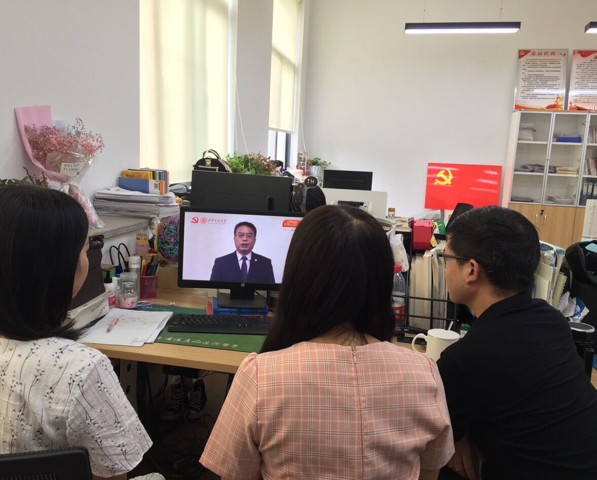 观看之时,各位党员同志对照自己的工作,敞开心扉发表了感想。王彬老师说,看战“疫”直播,让他再次感受到祖国和共产党的伟大。虽然不能做到在抗“疫”前线治病救人,但我们可以努力做好在抗“疫”后方的教书育人工作。今后也定将不忘初心、牢记使命,争做合格党员。与此同时,新加入本支部的7位员工党员也认真观看并进行了深度学习。