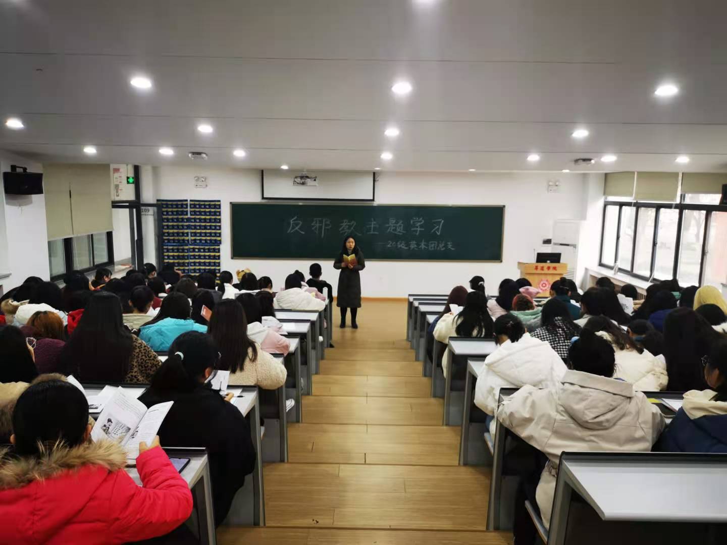 在各班辅导员的带领下,各班反邪教主题班会有序开展。为了使员工们更加深刻的了解邪教的本质和危害,各班以不同形式逐步开展,有的班级以播放反邪教的安全教育短片的主题班会形式,有的班级以讲解邪教危害的真实案例为题,还有的班级以班会讨论的形式讨论邪教给我们生活带来的危害。各种反邪教主题班会形式的开展都达到了让员工认清邪教面目、自觉抵制邪教的目的,取得了良好的教育效果,增强了员工们崇尚科学,反对邪教的意识。