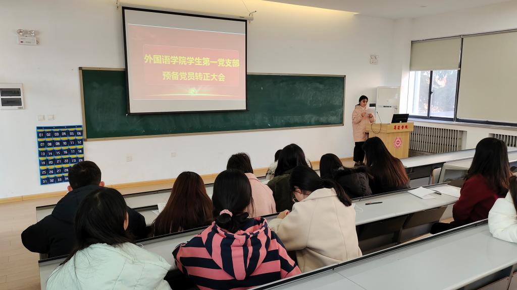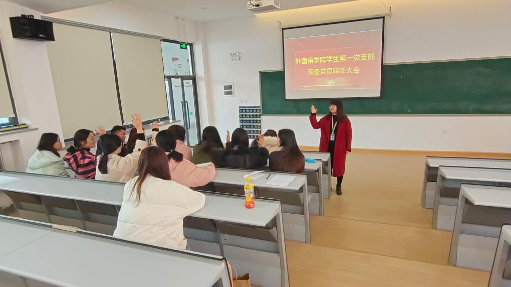 12月10日下午,beats365唯一官方网站第一党支部在教一楼208召开预备党员转正大会。此次会议由第一党支部书记胡颖慧同志主持,支部全体师生党员参加。