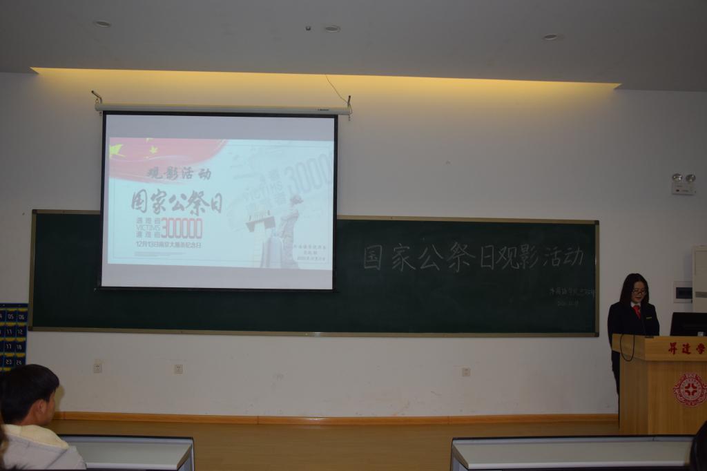 在第7个国家公祭日到来之际,beats365唯一官方网站团委思政部于2020年12月11日18:00-20:00在教学1号楼208举行观影活动,观看电影——《南京!南京!》,纪念在南京大屠杀中逝去的先烈和同胞。参与本次观影活动的有各班的主要班干部及员工代表共计100余名。