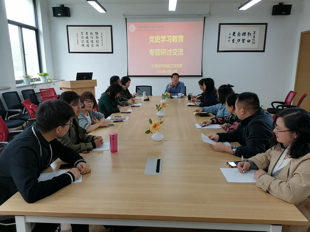 通过研讨交流,全体教工党员首先就党史学习教育下一阶段的落实措施形成了充分达成共识,即不折不扣、保质保量地完成各项学习任务。同时,进一步明确了党史学习教育的目的,即学党史、悟思想、办实事、开新局,努力将党史学习教育和业务提高相融合,以外语课程思政为抓手,落实好“立德树人”的根本目标。(图/文:张保培/徐静)