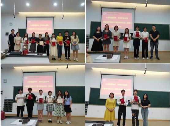 经过激烈角逐,最终经评委们讨论,杨冉、高福星同学获得特等奖,梁晓晴、刘玉龙、宋清爽、李璐同学获得一等奖;吴佳苗、葛笑笑、赵可心、罗琦圆、李晓寒、黄玲妹同学获得二等奖;孙赵林、周巧玲、岳晓彤、郭若婷、朝凯月、陈嘉琳、靳梦瑶、刘续梦同学获得三等奖。评委老师为获奖选手颁奖并合影留念。
