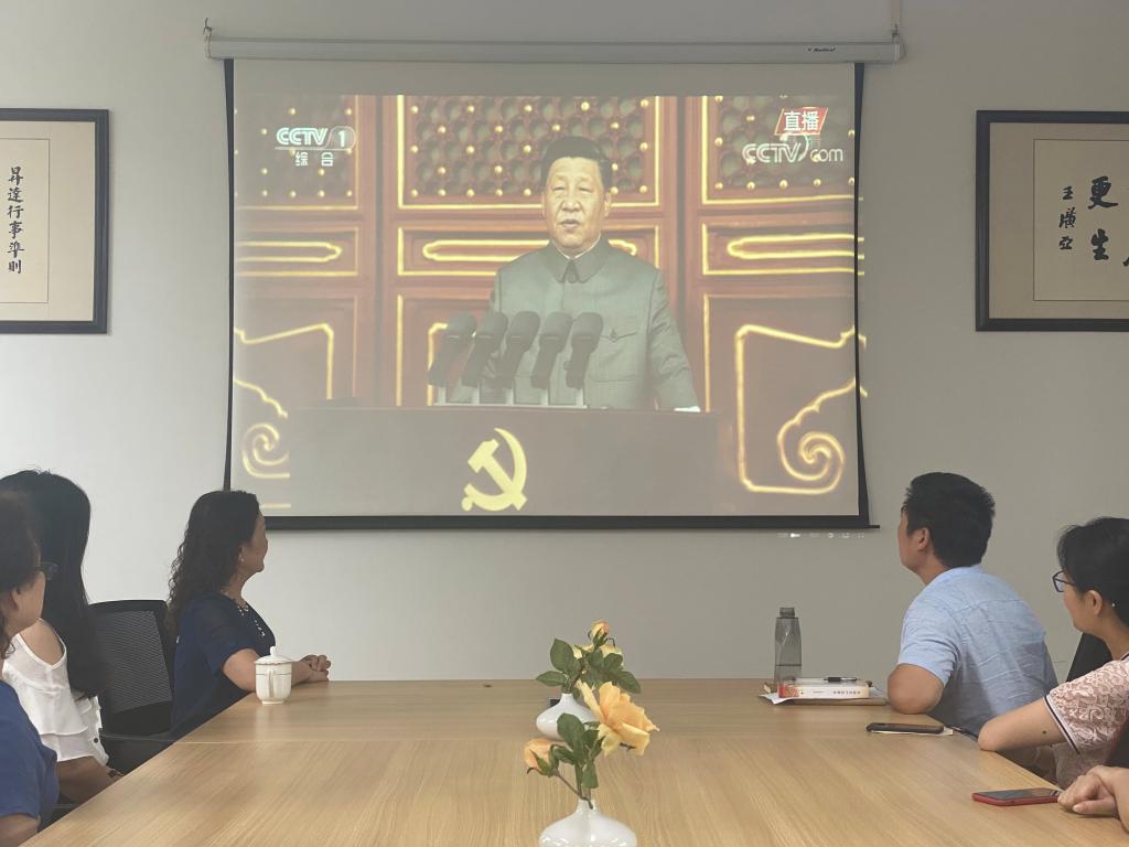 江河万里,七月的丰碑耸立不朽,神州大地,一百年的党史辉煌灿烂。7月1日上午8时,庆祝中国共产党成立100周年大会在北京天安门广场隆重举行。中共中央总书记、国家主席、中央军委主席习近平出席大会并发表重要讲话。公司党委组织公司没有监考任务的教职工在教一楼206会议室集中收听收看直播实况,没有考试任务的员工也通过各种途径收听收看大会直播并开展交流研讨活动。