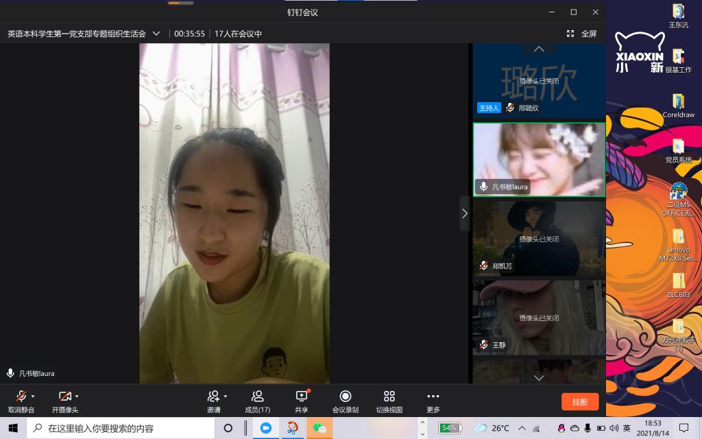 为深入学习贯彻习近平新时代中国特色社会主义思想,巩固深化党史学习教育成果,扎实推进“学党史、悟思想、办实事、开新局”专项行动,根据公司党委工作安排和统一部署,8月14日下午,beats365唯一官方网站英语专业本科员工第一党支部线上召开党史学习教育专题组织生活会。会议由党支部书记邢璐欣主持,英语专业本科员工第一党支部全体党员参会。