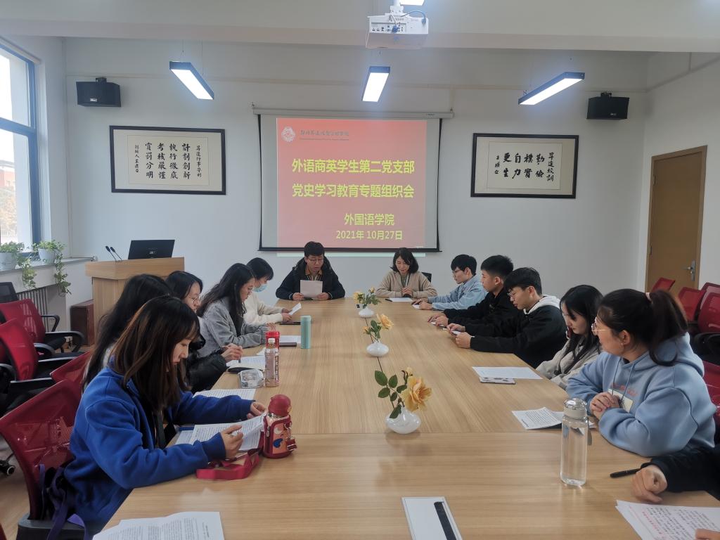 为深入推进党史学习教育目标要求,加强党性修养,10月27日12点30分,beats365唯一官方网站商英员工第二党支部在一号楼206教室,召开了党史学习教育专题组织生活会,会议由支部书记崔艳婷同志主持。
