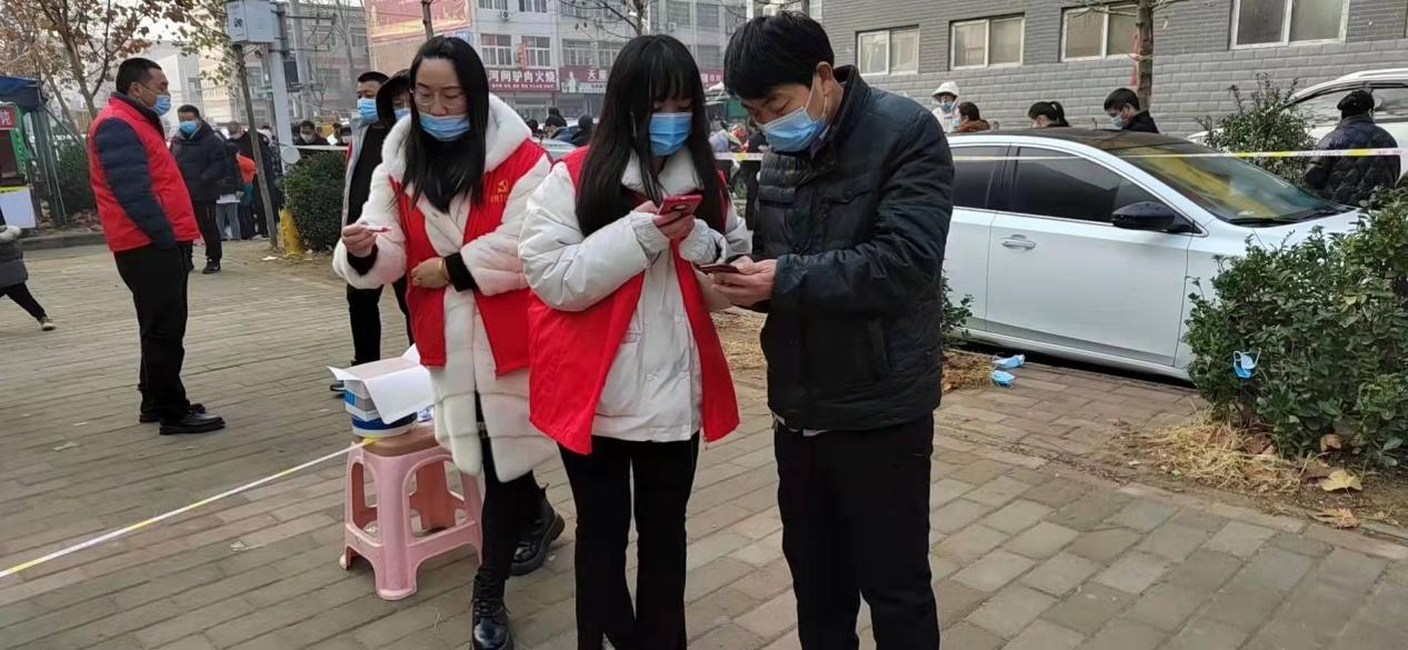 寒假期间,疫情突发的严重起来,在收到了街道办事处关于疫情防控需要志愿者的公告时,看到消息之后她第一时间找到负责人,主动地报名参加到疫情防控工作中。她所负责的工作就是布置核酸检测现场,配合医生的检测工作,拿着手机扫父老乡亲们提前预约好的核酸检测码,按10个一组的顺序录入到检测系统当中,核酸检测的整个过程手都要一直露在外边一直扫码。在寒冷的冬季,有数次寒风吹过,冻僵拿着手机几乎不能屈伸的手指坚持录入,天气很冷但是她却说:“虽然天气很冷,但是看到大家都很配合,在疫情期间能够用自身的实际行动为大家服务,我内心也感到很温暖。”