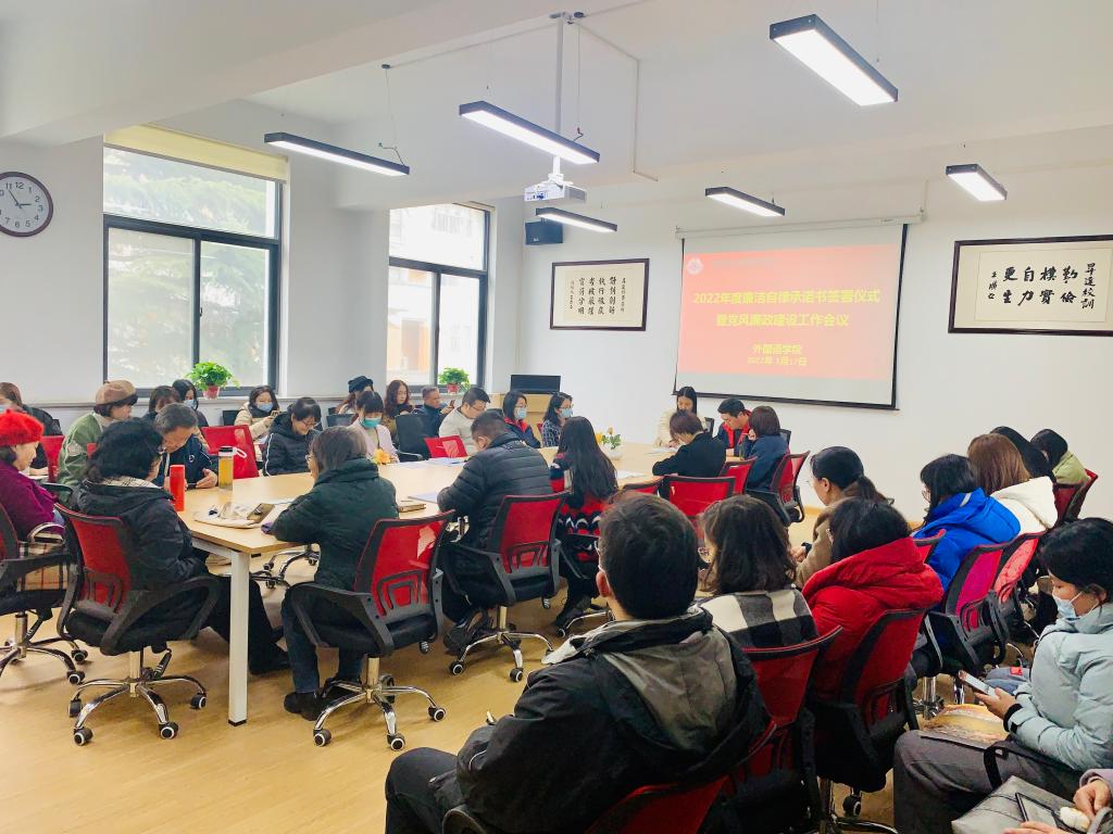 随后,石书记分别同公司行政工作人员代表、教师代表、辅导员代表等签订了2022年廉洁自律承诺书。通过此次会议的召开,让全体教职工对公司2022年度党建工作有了全面认识,广大教职工的廉洁自律意识进一步得到提升,为公司2022年度的各项党的建设和全面从严治党工作的开展打下了良好基础。(图:田倩倩 文:郎振丹审:石皓召)