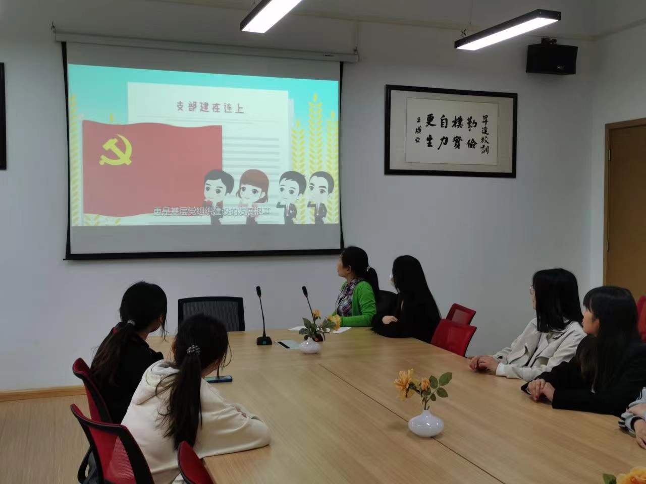 支部书记传达会议要领和学习的相关内容和要求,解读《支部条例一起学》的前三章的主要内容,一起观看前三章的视频内容,加强党性修养,增强政治修为,时刻想着为党工作,为人民服务。