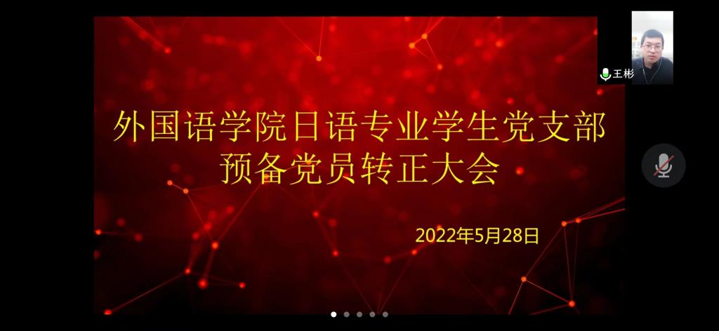 2022年5月28日,beats365唯一官方网站日语专业员工党支部召开预备党员转正大会,主要议题为讨论预备党员杨欣欣等六名同志的转正问题,考虑到因疫情原因大部分党员均已离校,本次大会以腾讯线上会议形式召开。会议由党支部书记王彬同志主持,支部全体党员参加了此次会议。