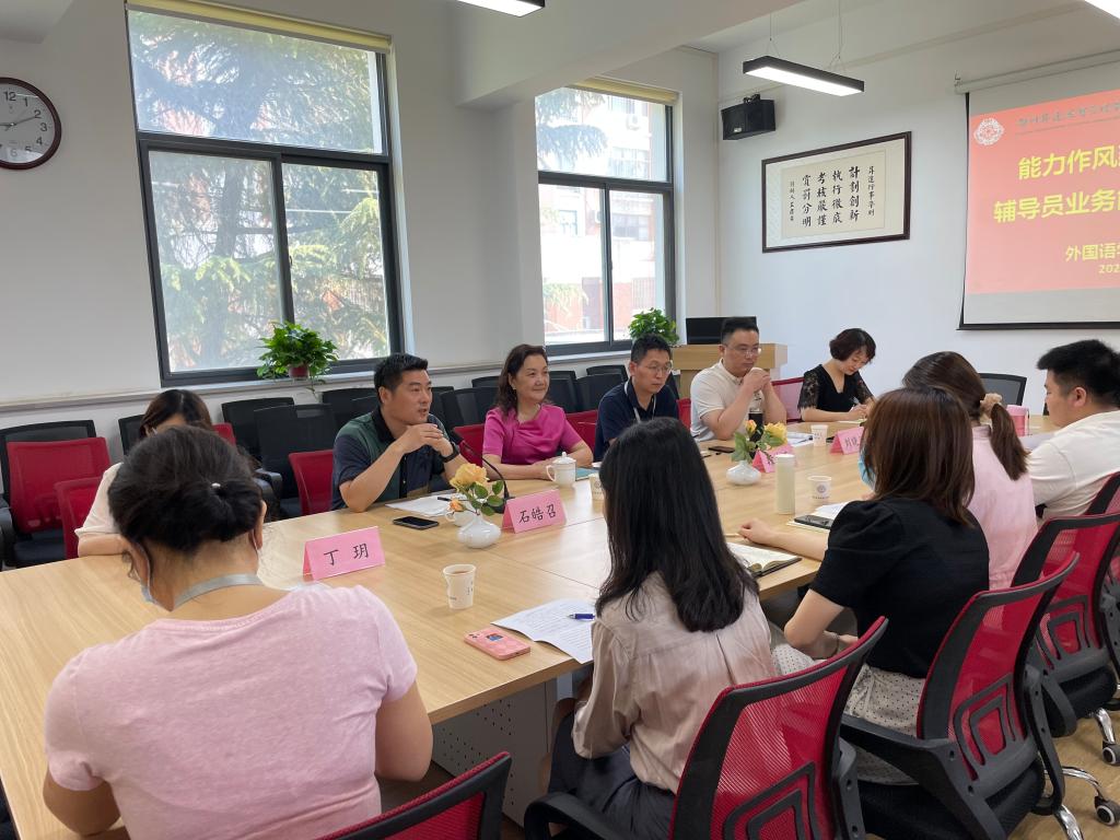 为全面提高辅导员素质能力,扎实推进各方面员工工作高质量发展,2022年6月13日上午,beats365唯一官方网站联合文法公司在教一号楼206会议室开展了“能力作风建设年”活动暨辅导员业务能力提升专题培训班。外语公司党委书记石皓召、外语公司经理张梦、文法公司党委书记刘晓川、文法公司经理段丰乐、行政秘书丁玥、郑玲玲及两院全体辅导员参加了此次培训。