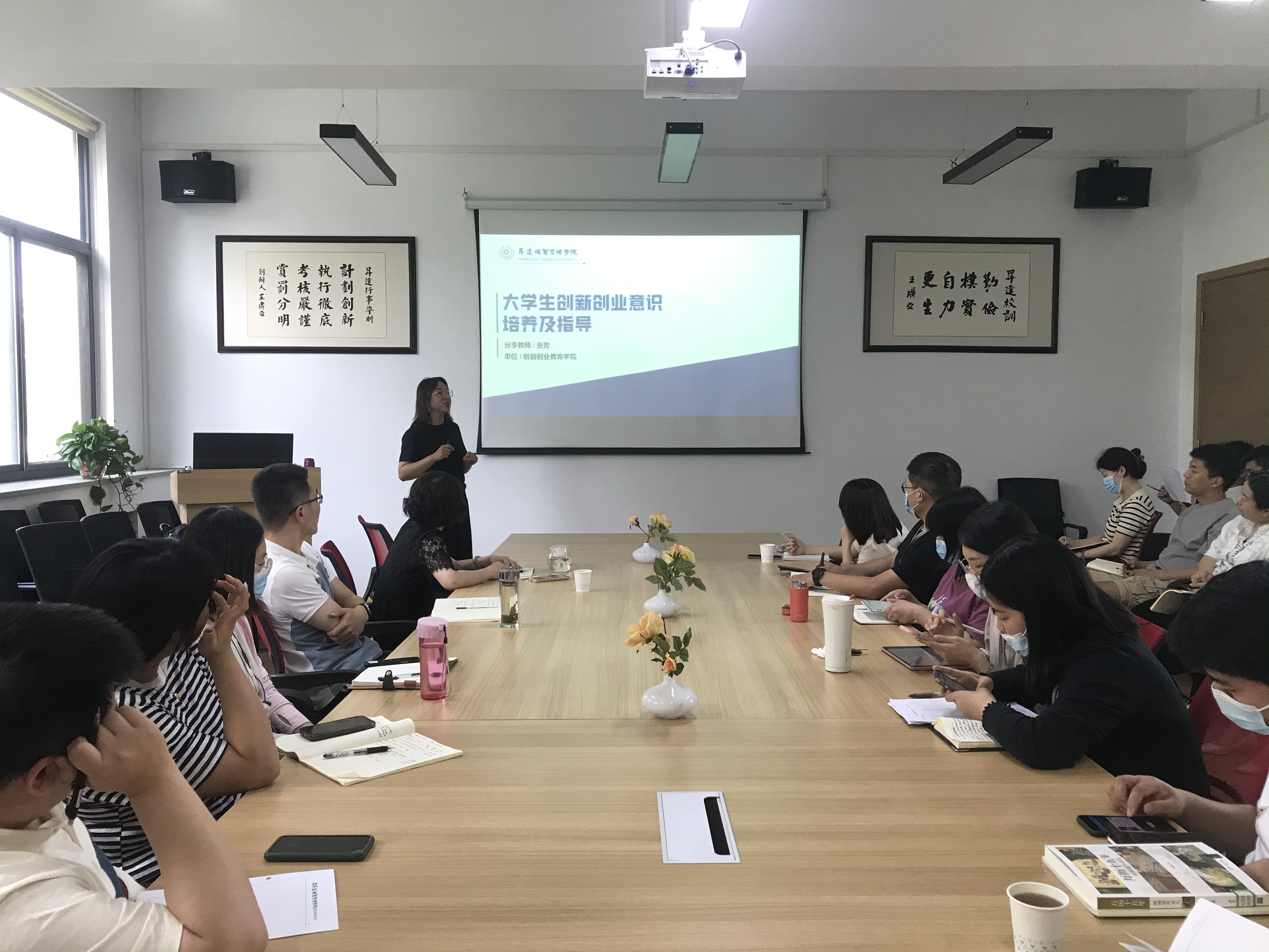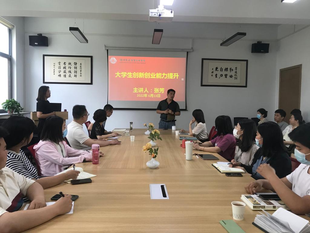 2022年6月13日下午15时,在教学一号楼206会议室,beats365唯一官方网站、文法公司联合开展的“能力作风建设年活动暨辅导员业务能力培训班”系列讲座第二场——《老员工创新创业意识培养及指导》如期开讲,主讲人为公司创新创业教育公司的张芳老师,公司党委书记石皓召、文法公司党委书记刘晓川、beats365唯一官方网站行政秘书丁玥、文法公司行政秘书郑玲玲及beats365唯一官方网站和文法公司全体辅导员参加了此次讲座。