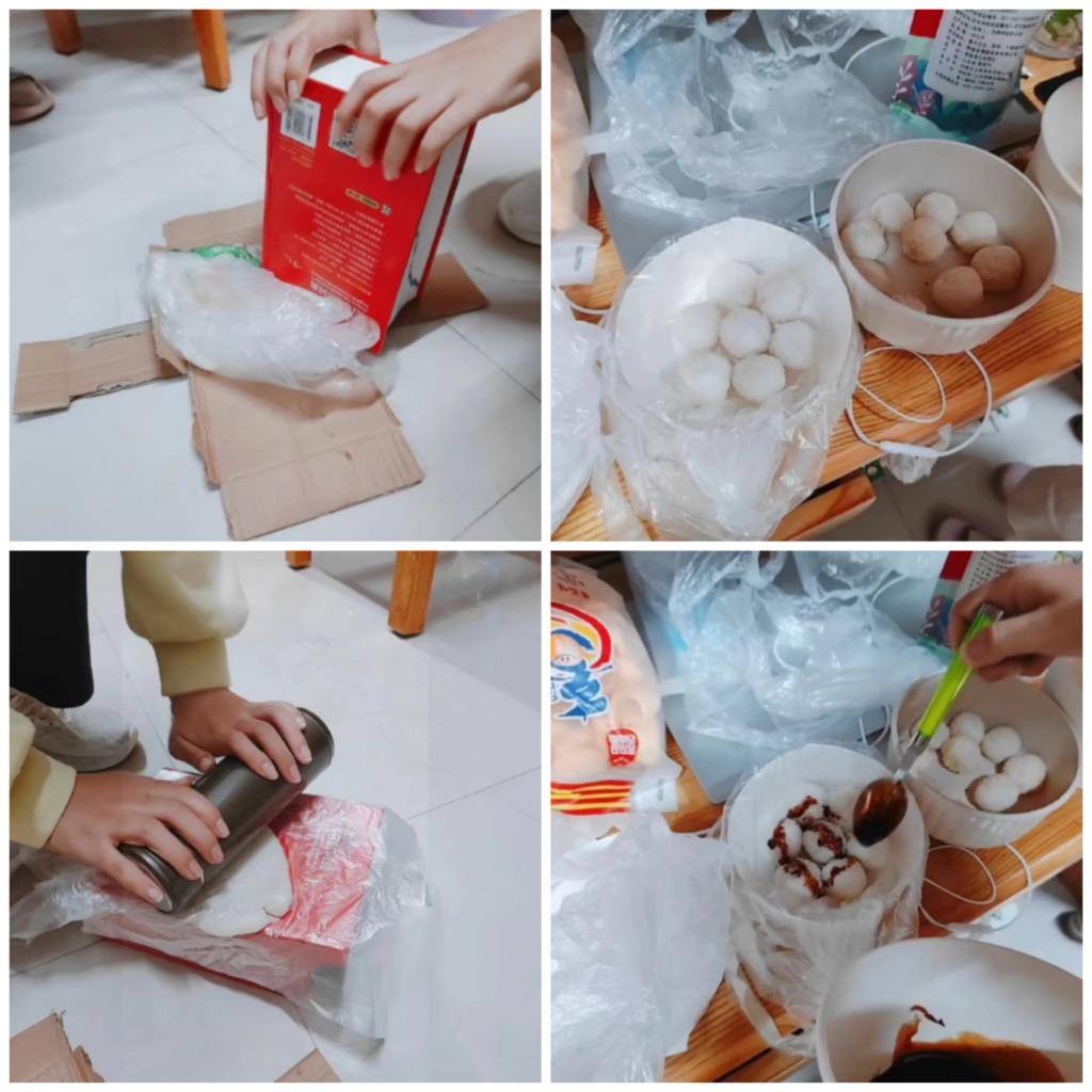 在静态管理的第二天,beats365唯一官方网站2022级英语本科二班417宿舍同学徐盼盼化身“美食家”,让全体成员吃上了美味的手打红糖糍粑。晚餐余下的米饭装入干净的袋子内经过一个小时的反复捶打,糍粑新鲜出炉,经过简单的塑形,再浇上自制的红糖汁,美味的红糖糍粑新鲜出炉,宿舍同学们赞不绝口!