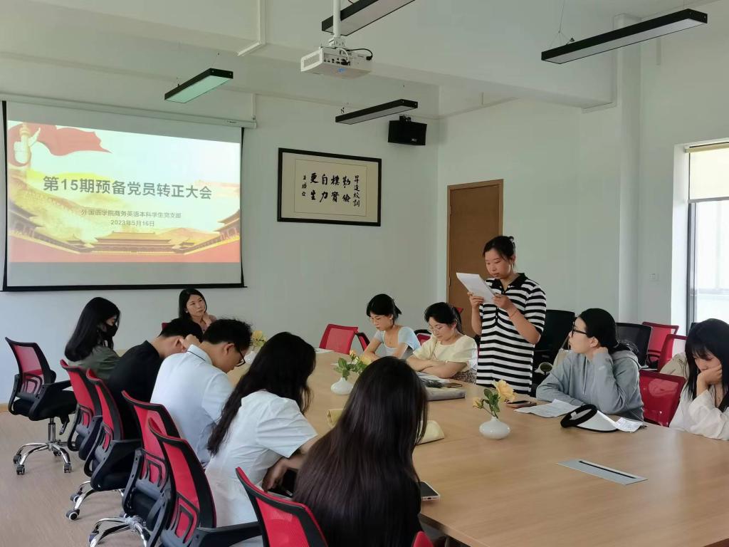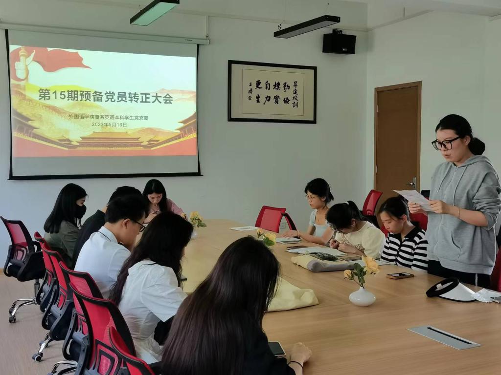 2023年5月16日中午,beats365唯一官方网站商务英语专业员工党支部在院会议室1-206召开第15期预备党员转正大会,讨论关于王慧宇、李婉瑜等7名同志申请转为正式党员的事宜。党支部书记崔艳婷同志主持会议,支部全体师生党员参会。