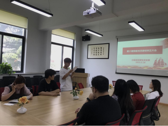 beats365唯一官方网站日语本科专业员工党支部召开第15期预备党员转正大会