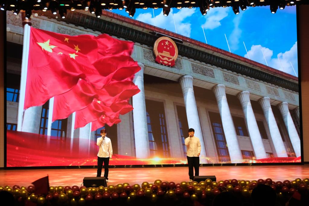最后,合唱《歌唱祖国》将整场演出推向了高潮,观众们一起高唱着这首歌曲,表达了对祖国的热爱和忠诚。
