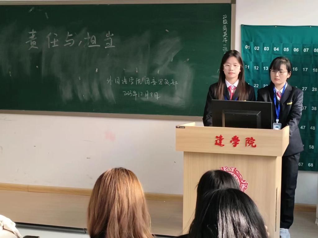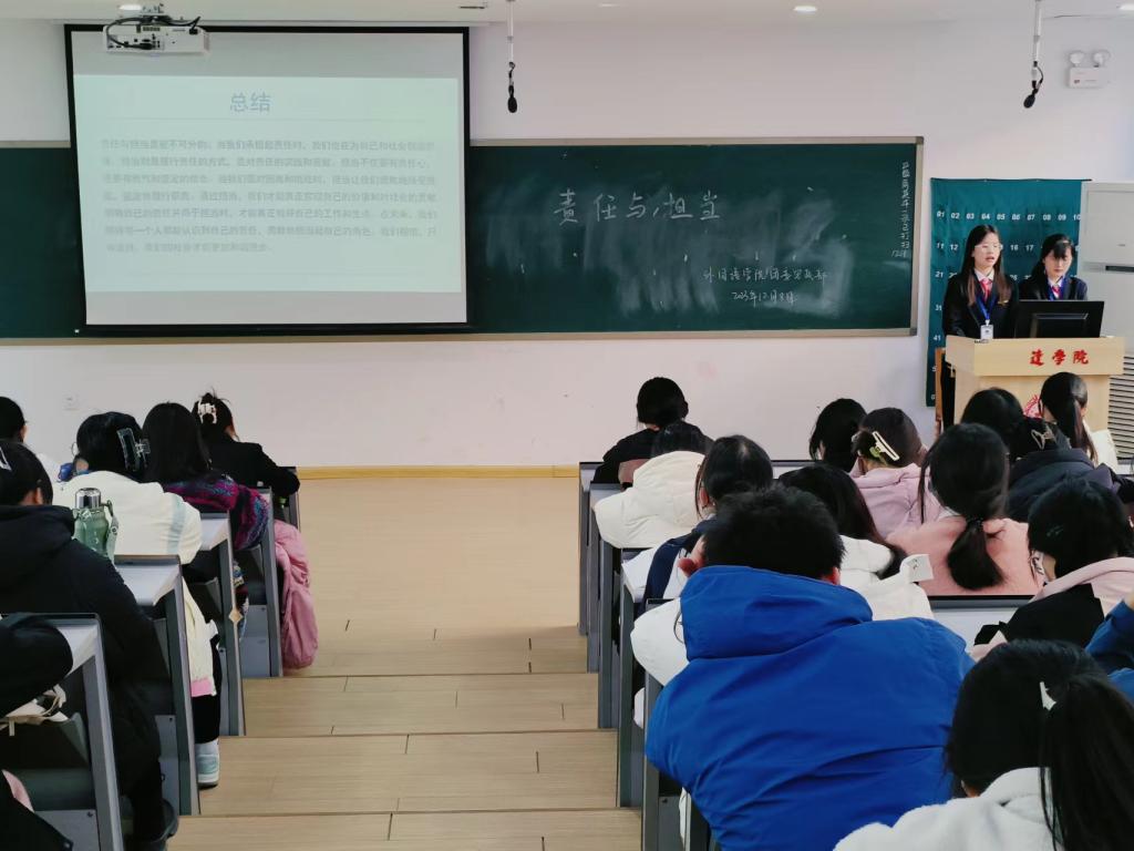为了增强员工的社会责任感和担当意识,beats365唯一官方网站团委思政部于2023年12月15日在教学一号楼109教室举办了一场以“责任与担当”为主题的团课活动。