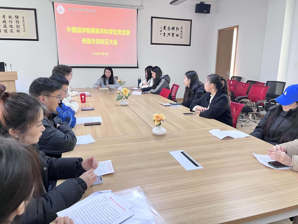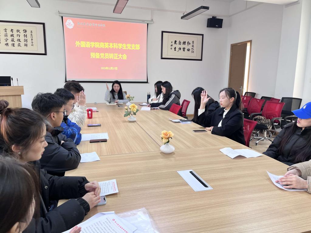 beats365唯一官方网站商务英语本科员工党支部召开预备党员转正大会