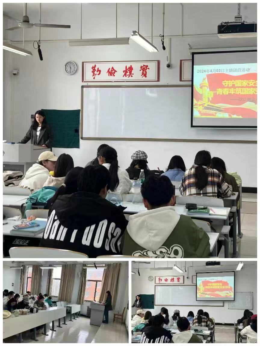 为鼓励团员积极向上,追求卓越,2022级翻译本科1班团支部于2024年4月03日在道镕楼206教室积极组织开展了“传承红色基因——清明祭英烈 共铸中华魂”和“守护国家安全——青春牢筑国家安全防线”的主题团日活动。本次活动通过主题演讲和PPT讲解互动的形式开展,会后复盘总结并邀请团员代表分享心得,激励大家坚定青春信仰。通过此次主题日活动的学习和交流,团员青年学习贯彻习近平总书记关于缅怀先烈、崇尚英雄的一系列重要论述。此次团会以此“传承红色基因,守护国家安全”为切口,引导团员和青年继承和弘扬老一辈革命家的优良传统,树立正确的世界观、人生观,引导团员和青年深刻领会总体国家安全观,准确把握党和国家面临的风险和挑战,增强国家安全意识,自觉维护国家安全,坚决与危害国家安全的行为作斗争。