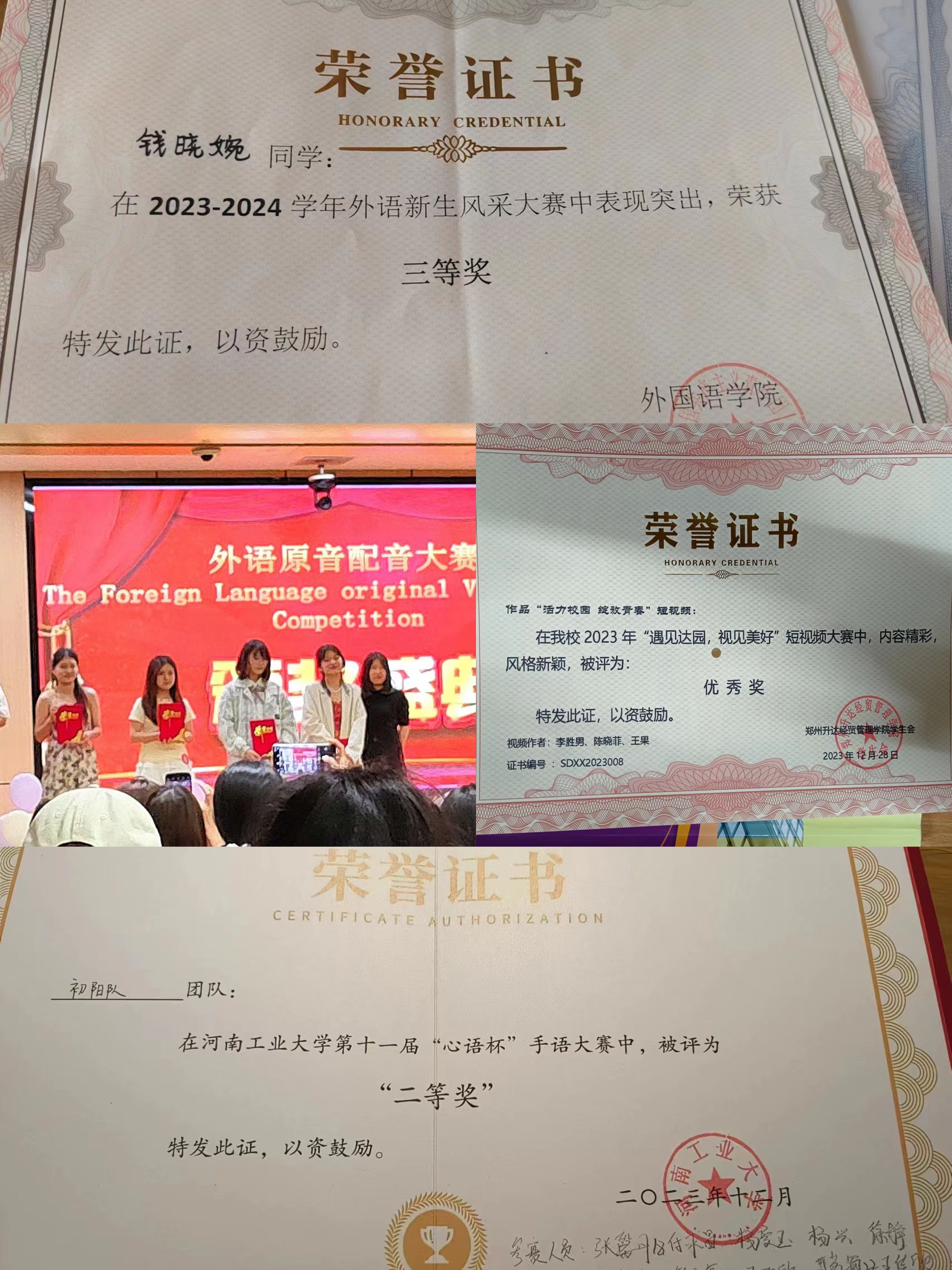 我们积极参加校文体活动,在校配音大赛、遇见达园短视频大赛及团学活动项目设计等大赛中,我们收获颇丰。这不仅丰富了我们的校园生活更提升了我们的个人能力。