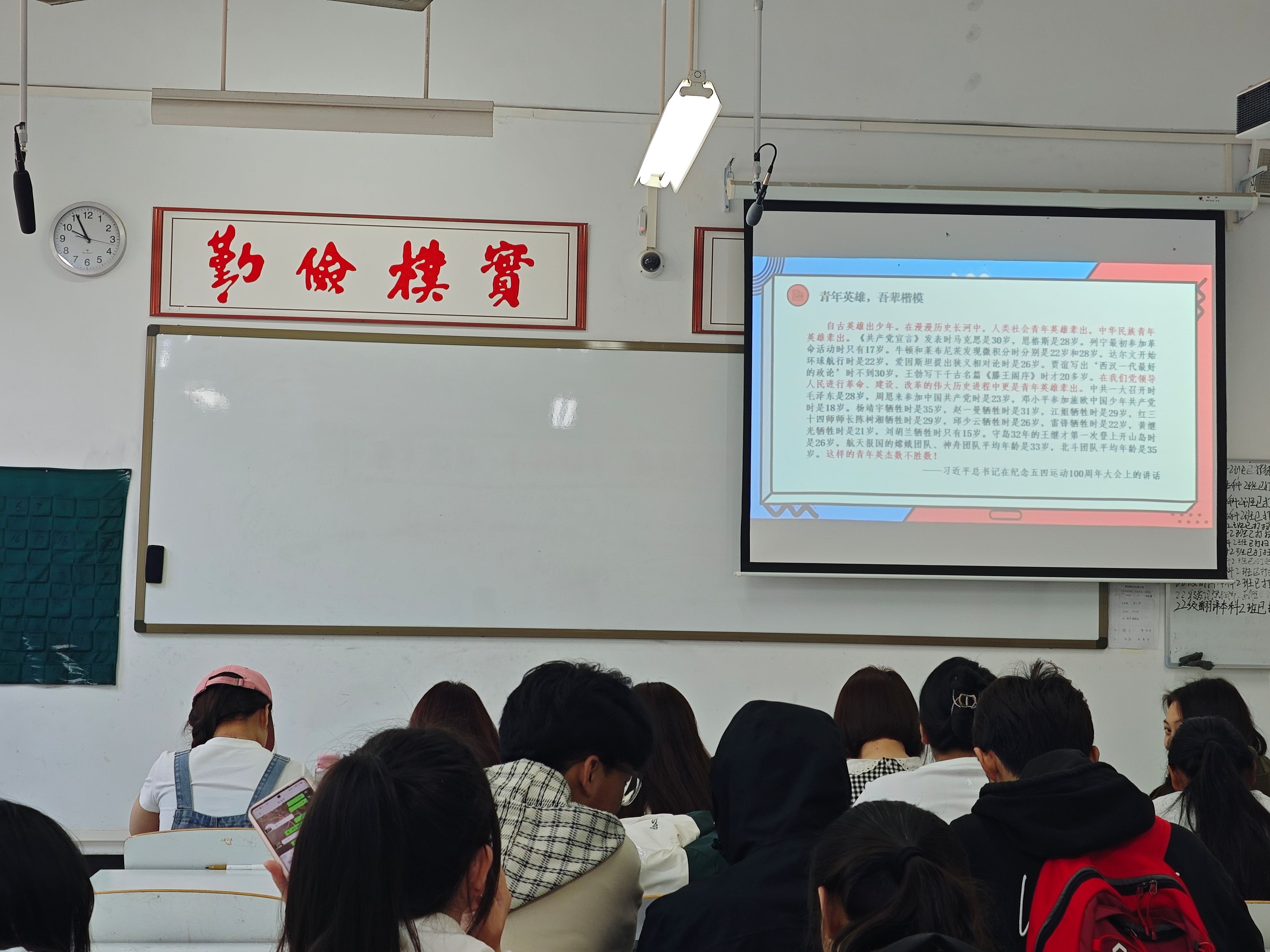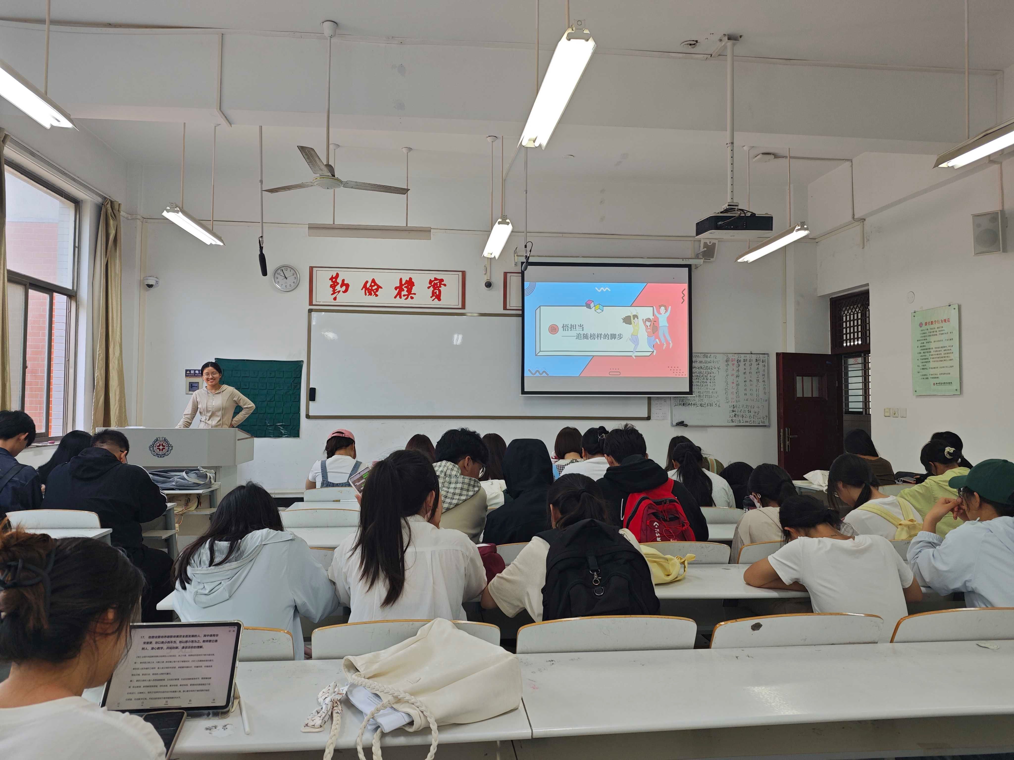 2023级商务英语本科2班团支部于2024年5月7日在道镕楼210教室开展了“青春挺膺担当——青春之我,创造青春中国”主题团日活动。团支书通过PPT的形式,引导同学们树立正确的思想价值观,同时增进了支部团员之间的沟通交流与学习。