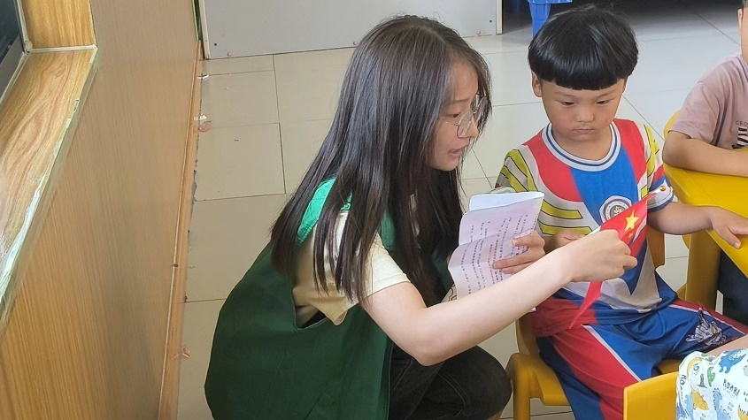 实践队员张诗婷讲述了《小英雄王二小》的故事,运用了生动的语言,丰富的表情和适当的动作,将故事中的情节和人物形象展现出来。培养了小朋友的爱国情怀,让小朋友从小就了解和感受为国家和人民英勇奉献的精神,激发他们对祖国的热爱之情。通过故事,引导小朋友思考什么是对的、什么是错的,培养他们的是非观念。传承了历史文化,帮助小朋友了解过去的历史,知道今天的幸福生活来之不易,珍惜现在。