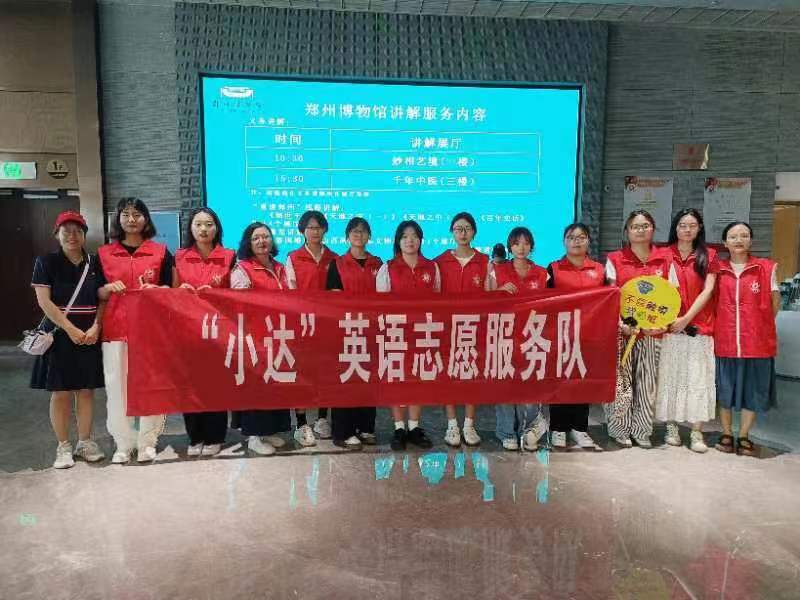 为贯彻落实习近平总书记关于青年工作的重要指示精神,进一步引导和帮助广大青年员工上好与现实相结合的“大思政课”,2024年7月21日,beats365唯一官方网站英语教研室党支部教师党员教师张丽娟、王倩倩、许静带领由公司英语专业员工组成的“小达”英语志愿服务队到郑州博物馆进行暑期社会志愿服务。